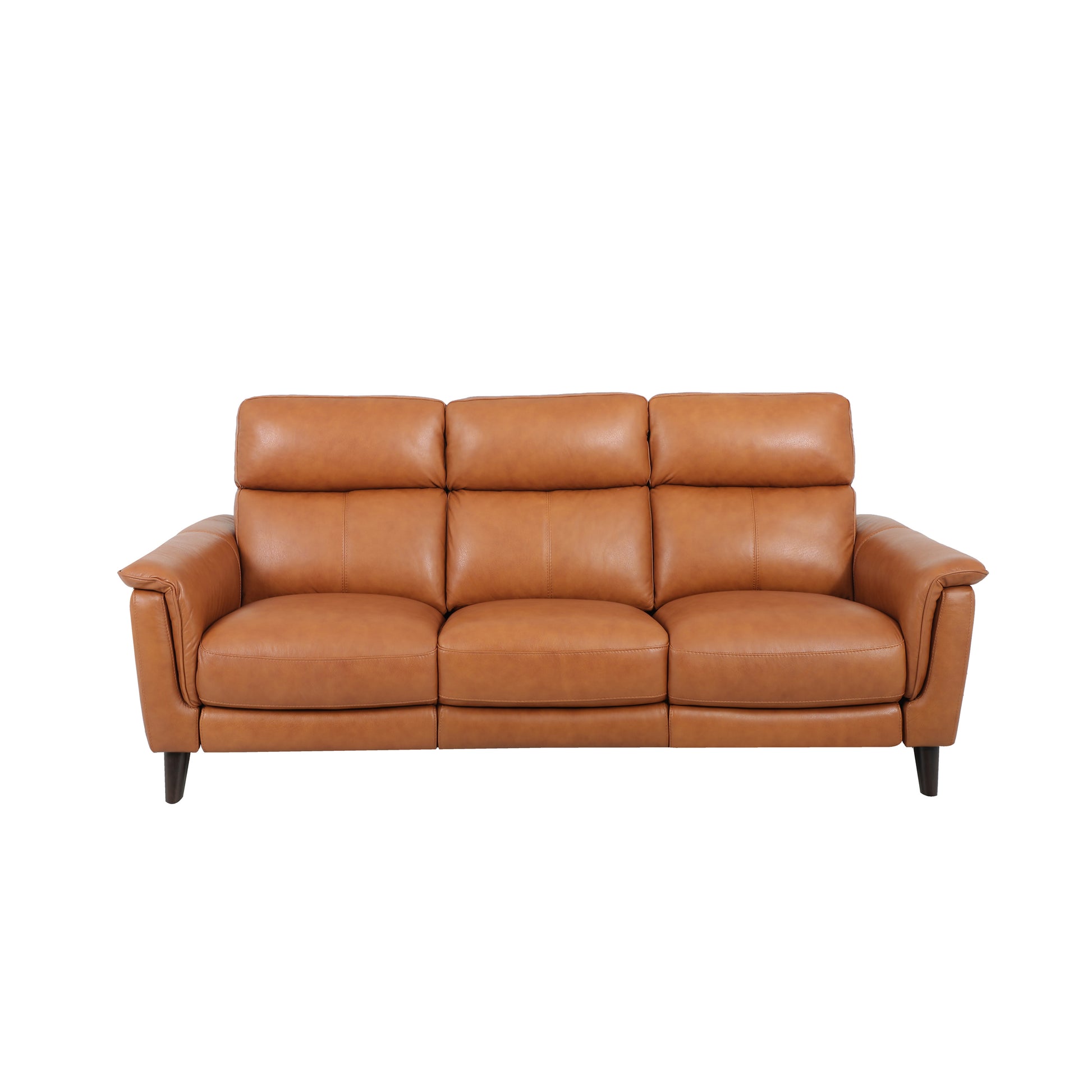 Cruise is a high-back recliner sofa designed for comfort and convenience. Its fold-away footrest keeps a sleek profile, while built-in USB ports and high-density lumbar support provide everyday functionality. Available in Leather in Cognac.