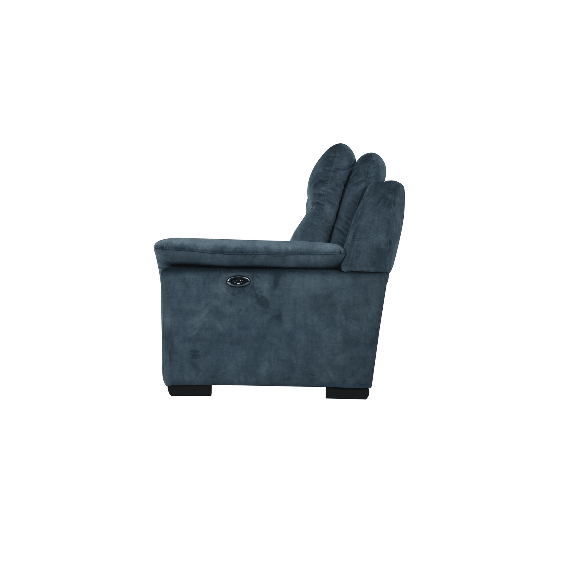 One-of-one sofa: 2.5 Seater sofa, Powered Recliner with USB-charging port, fits up to 3 pax. This ready stock sofa is available in a soft and lucious finish Fabric in Majolica Blue (FAB-DEC-11) online only.